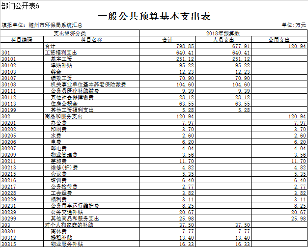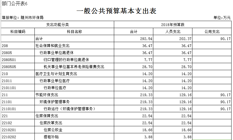 第三部分 ?隨州市環保局2018年部門預算表