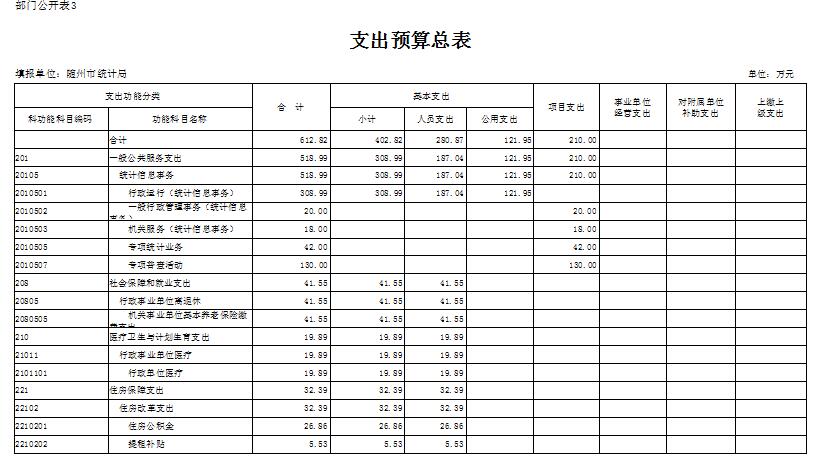 (一)隨州市統計局(含隨州市城市社會經濟調查隊、隨州市普查中心)匯總