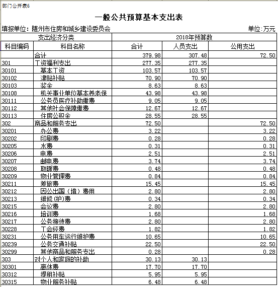 第三部分 隨州市住房和城鄉(xiāng)建設(shè)委員會2018年部門預(yù)算表