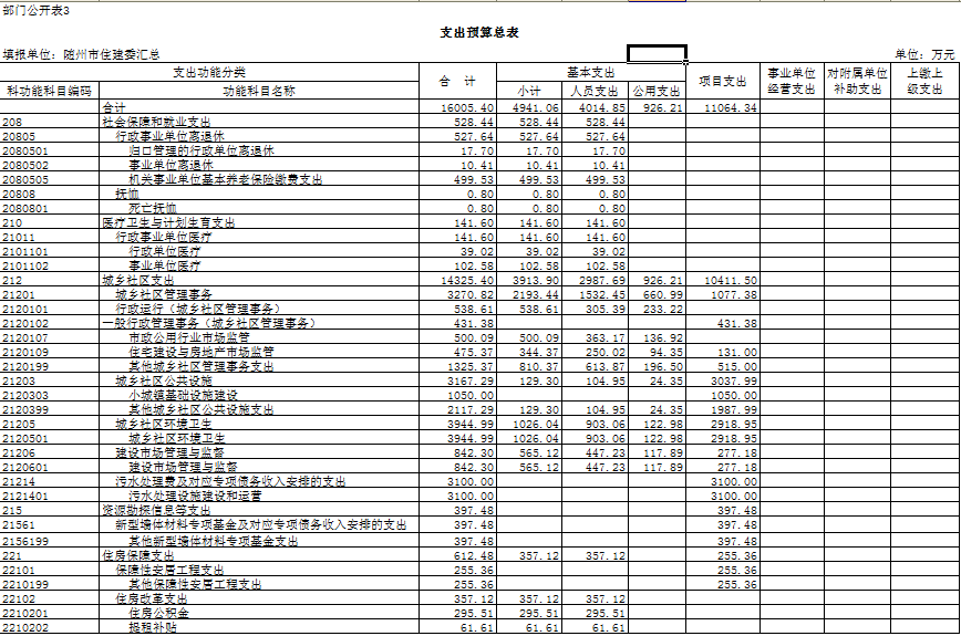 1、住建系統(tǒng)2018年財政預(yù)算安排支出16005.40萬元,與上年相比減少30.39%。減少主要原因為嚴格執(zhí)行中央八項規(guī)定,壓縮公用經(jīng)費支出。
