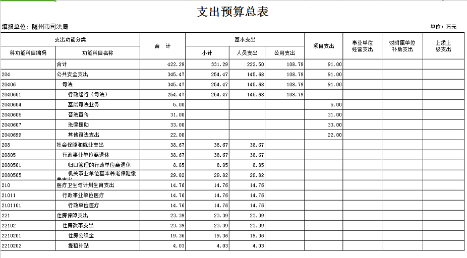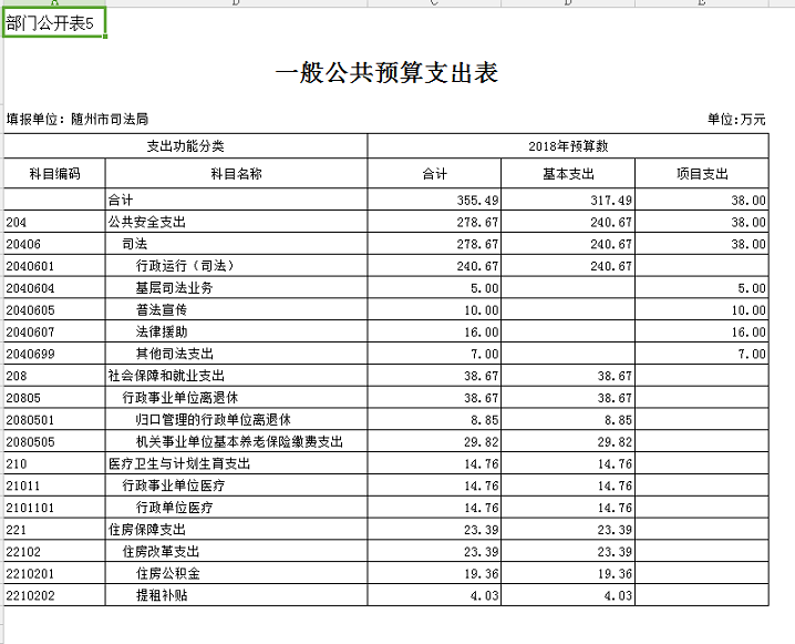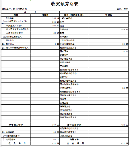 隨州市司法局2018年部門預算公開情況