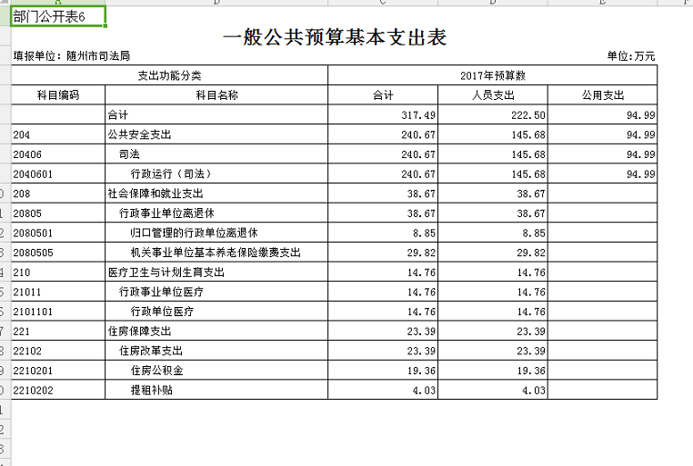 四、 隨州市司法局2018年部門預算表