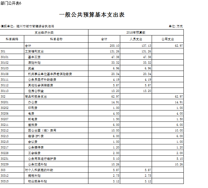 六、執(zhí)法局本級(jí)預(yù)算表