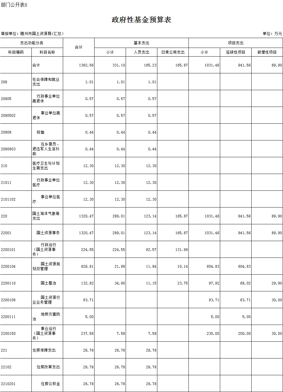 隨州市國土資源局2018年度系統匯總政府性基金預算合計1362.56萬元,比上年度預算安排總額2297.53萬元,減少934.97萬元,減少比例40.69% 。主要原因是減少了耕地占補平衡、集體土地確權登記、土地開發復墾等項目預算支出,相應政府基金收入減少。