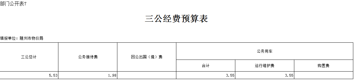2018年隨州市物價局“三公”經費年初預算安排5.53萬元。其中: