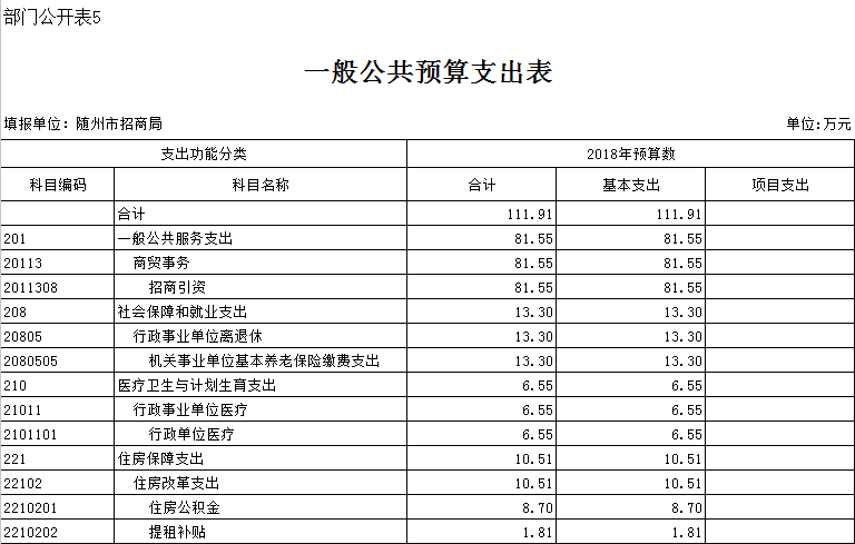 第三部分 隨州市招商局2018年部門預(yù)算表
