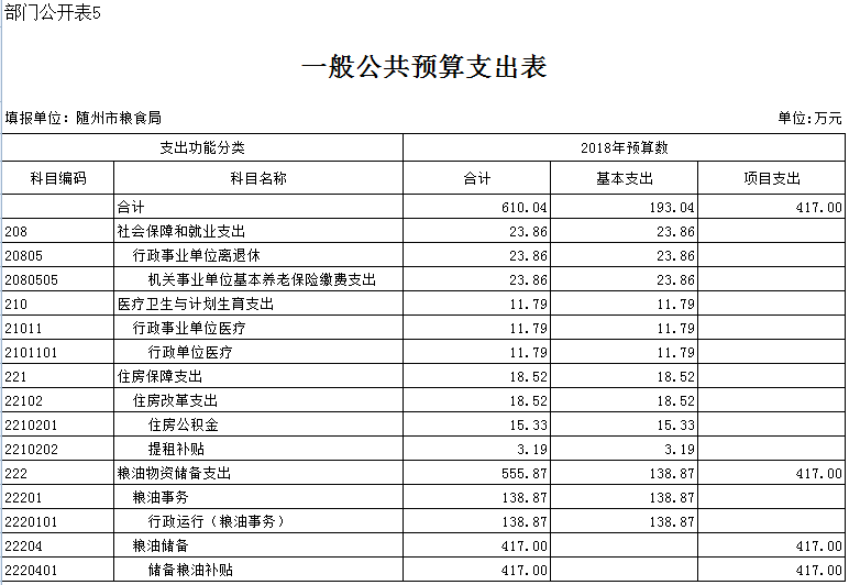 第二部分 隨州市糧食局及局屬單位2018年部門預算情況說明