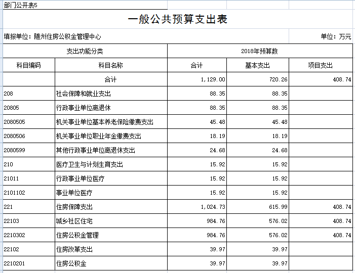 第三部分  隨州住房公積金管理中心2018年部門預算表