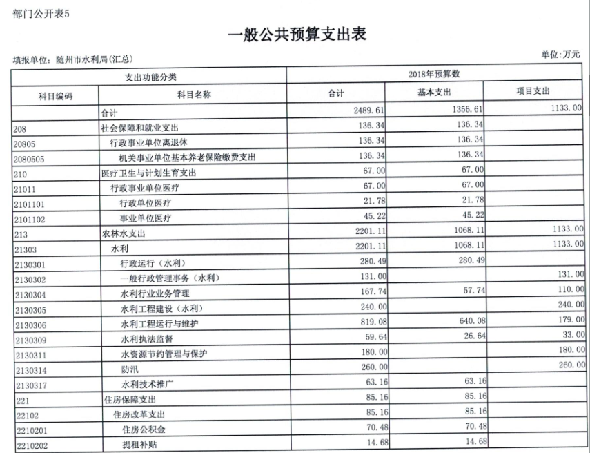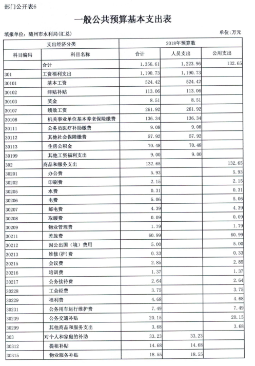 第三部分 隨州市水利局2018年部門預(yù)算表