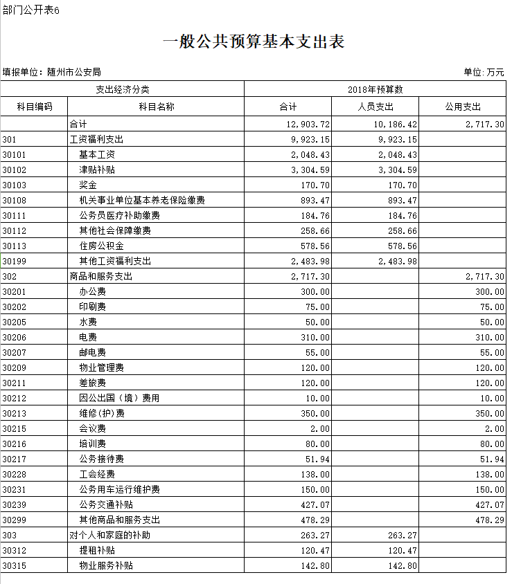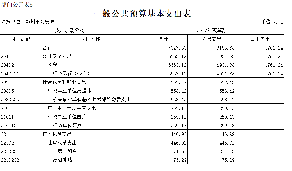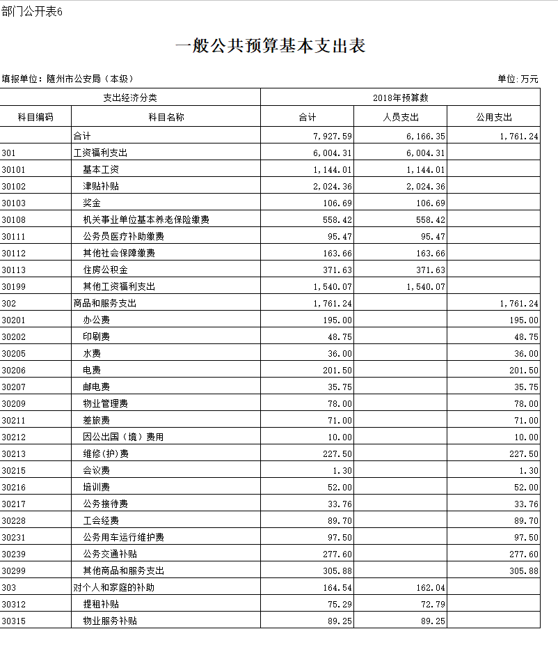 隨州市公安局本級基本支出7927.59萬元,比上年減少166.05萬元,減少2.05%,包含: