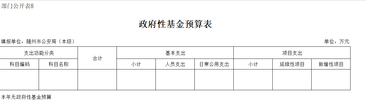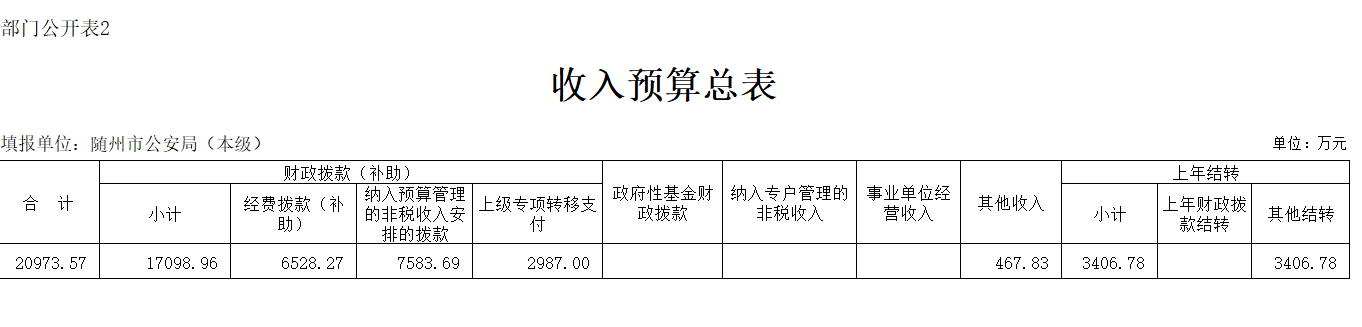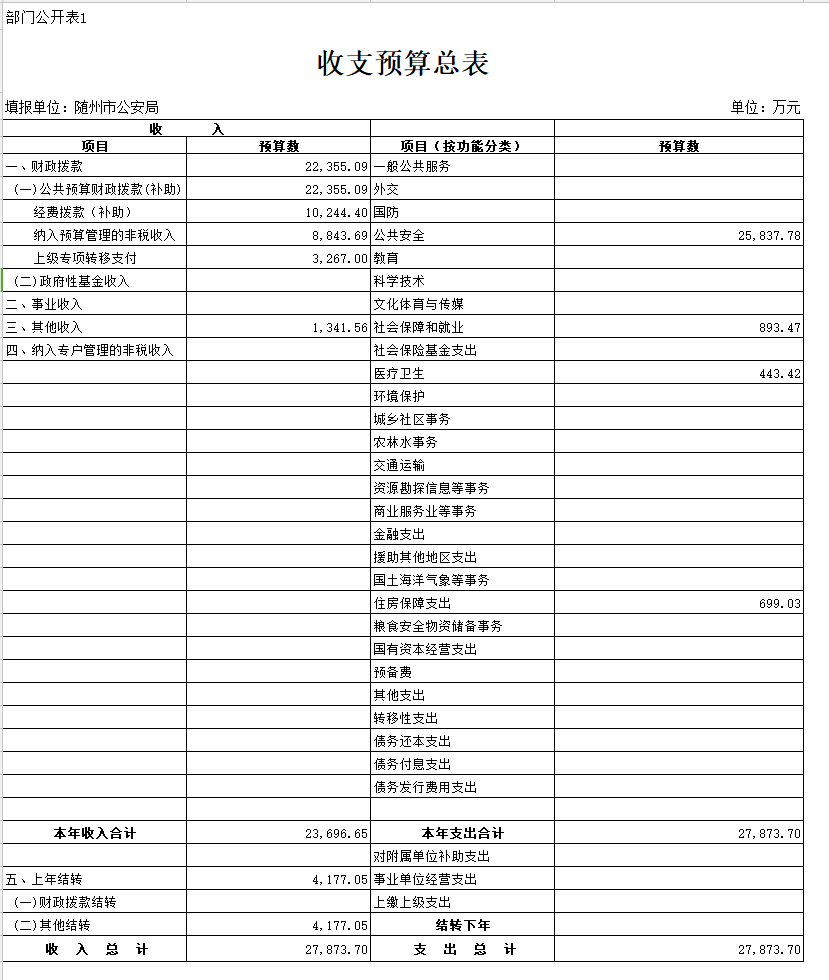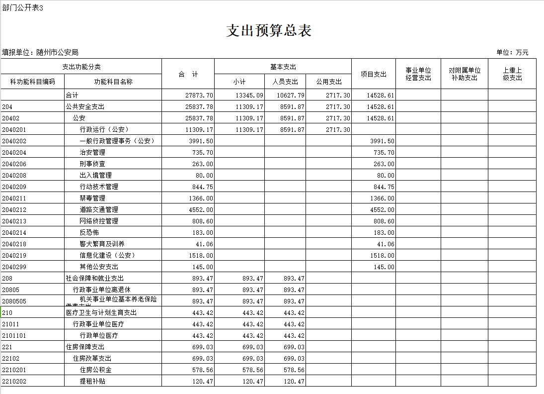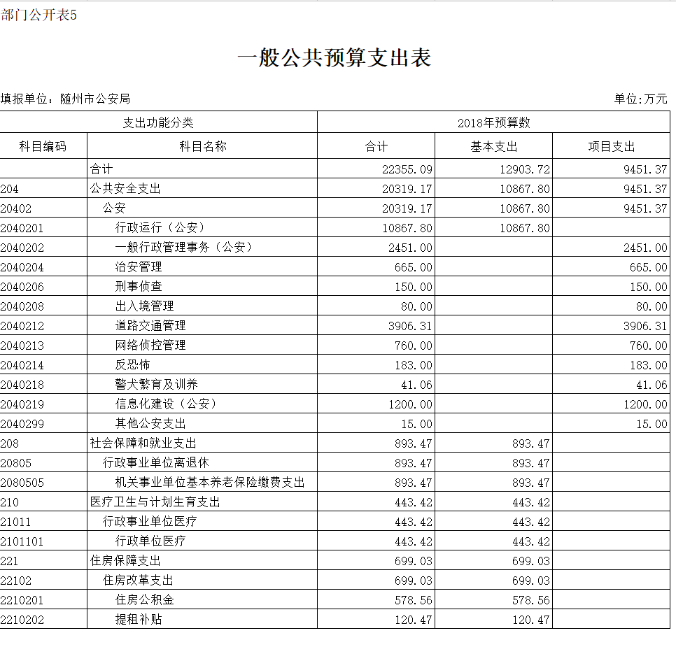 隨州市公安局預算(本級)含市局機關及高新區公安分局,但不含消防支隊預算。其中: