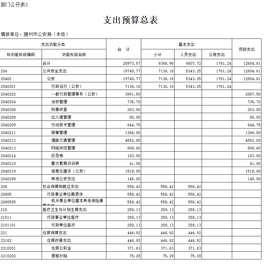 10、行政運行(公安)(2040201項):反映公安機關行政單位的基本支出。