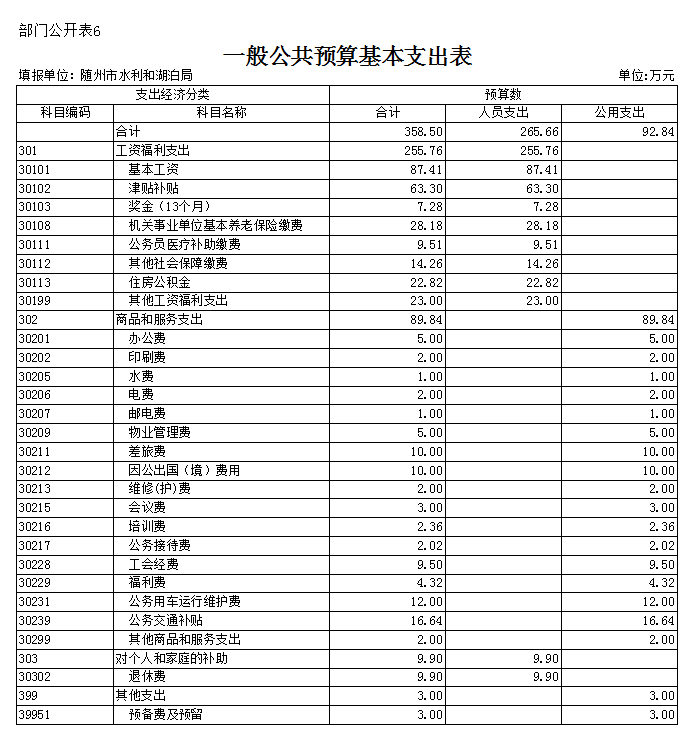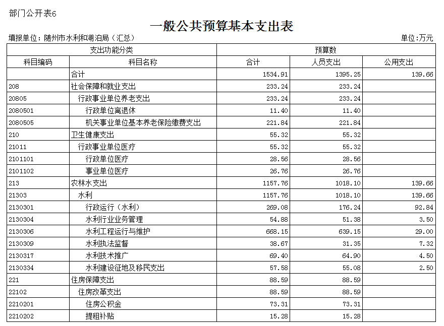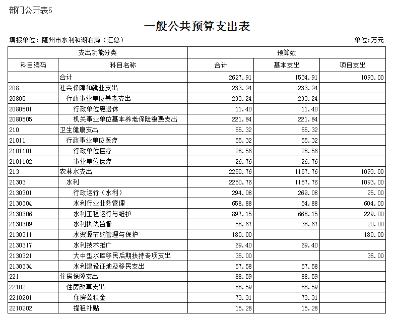 第三部分? 隨州市水利局2020年部門預(yù)算表