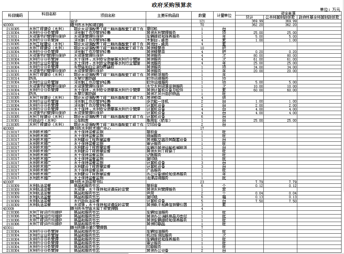 2020年納入部門預(yù)算管理單位8個(gè),隨州市水利和湖泊局(本級)、水政監(jiān)察支隊(duì)、水利技術(shù)推廣中心、河道堤防建設(shè)管理局、先覺廟水庫工程管理局、白云湖水利工程管理局、隨中灌區(qū)管理局、市移民局。