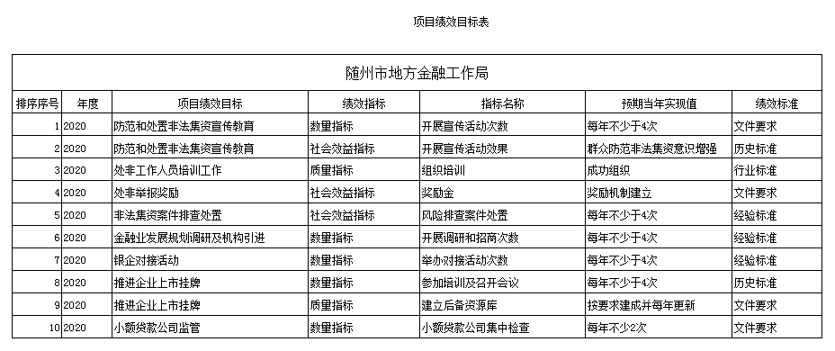 第四部分 隨州市地方金融工作局2020年預算績效情況