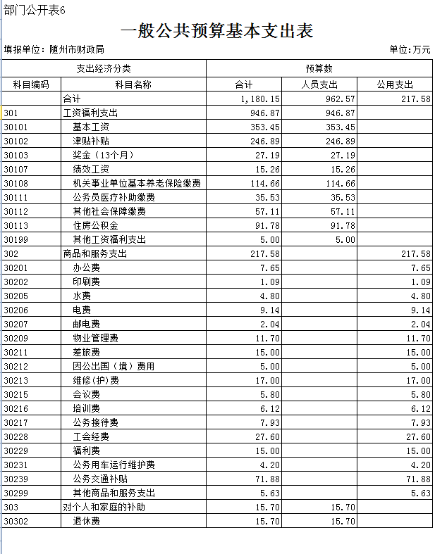 第三部分 隨州市財(cái)政局2020年部門預(yù)算表