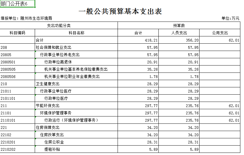 隨州市生態(tài)環(huán)境局2020年部門預(yù)算
