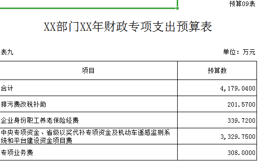 九、財政專項支出預(yù)算表
