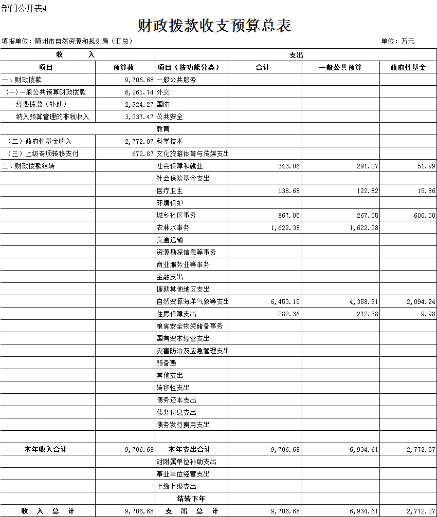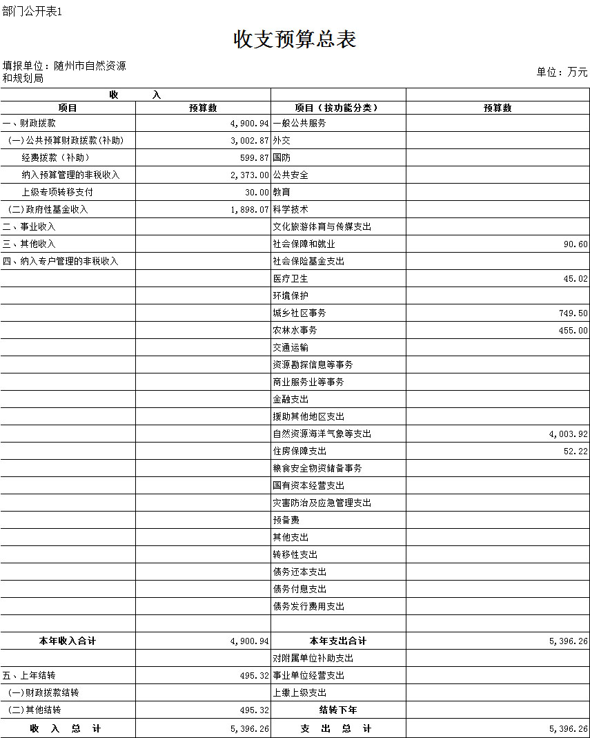 一、部門收支預算總表