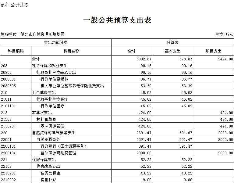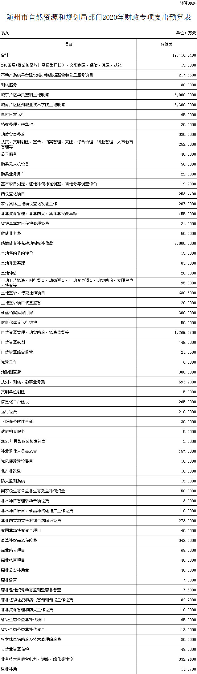 第三部分 ?隨州市自然資源和規劃局2020年部門預算表