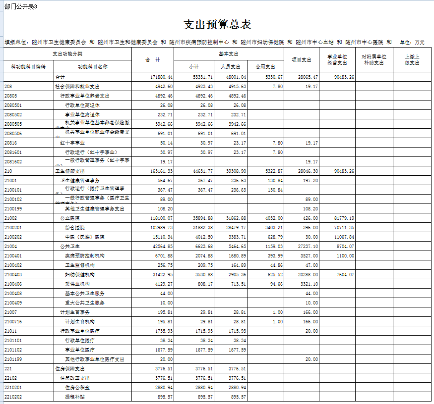 二、隨州市市直衛健系統2020年匯總預算情況說明