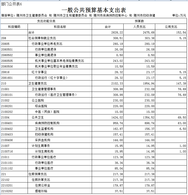 第二部分隨州市衛健委2020年部門預算和匯總預算情況說明