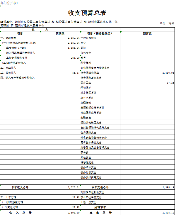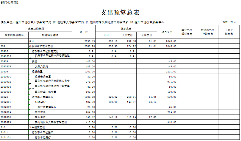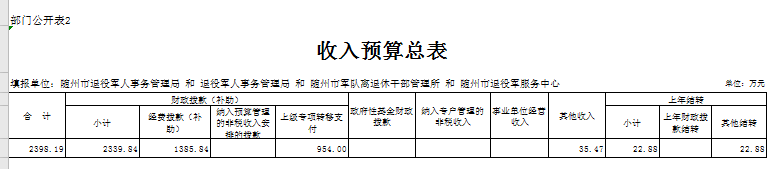 第三部分 隨州市退役軍人事務局2020年部門預算表