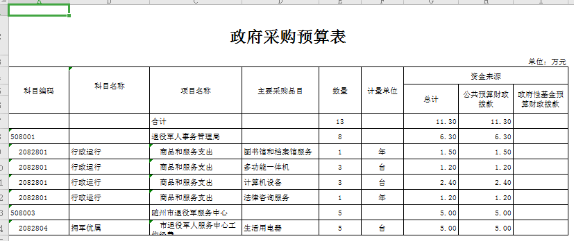2020年,市退役軍人事務局系統政府采購預算11.3萬元,較上年增幅100%。其中圖書館和檔案館服務1.5萬元、法律咨詢服務1.2萬元、計算機打印機設備3.6萬元、生活用電器5萬元。2020年政府采購為新增預算,無上年數據。