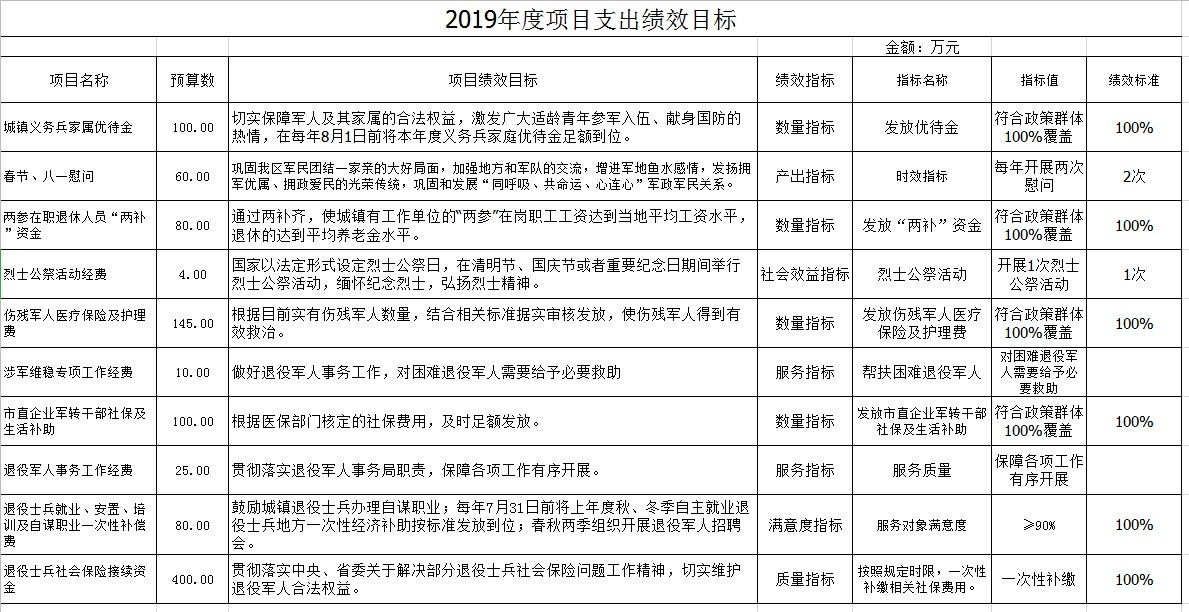 2、保障相關涉軍群體補助、幫扶等資金發放到位:根據規定,發放市直企業軍轉干部社保及生活補助、傷殘軍人醫療保險及護理費、兩參在職退休人員“兩補”資金、城鎮義務兵家屬優待金、退役士兵職業技能培訓及自謀職業一次性補償費,開展困難退役軍人幫扶等。