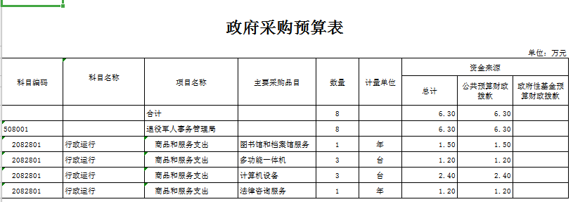 2020年市退役軍人事務局機關政府采購預算6.3萬元,較上年增幅100%。其中圖書館和檔案館服務1.5萬元、法律咨詢服務1.2萬元、計算機打印機設備3.6萬元。2020年政府采購為新增預算,無上年數據。