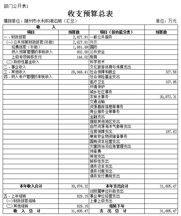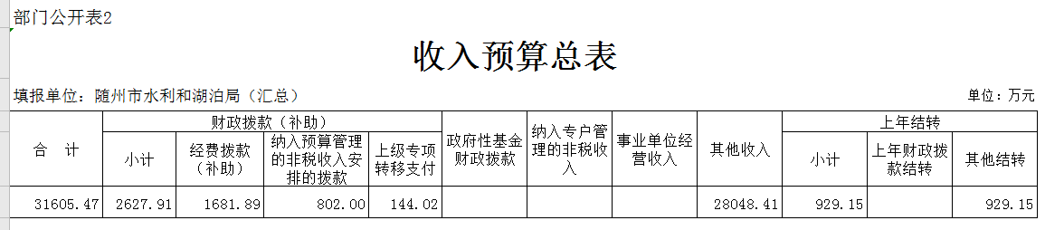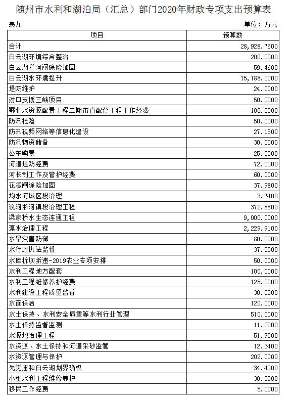 第三部分? 隨州市水利和湖泊局2020年部門預(yù)算表