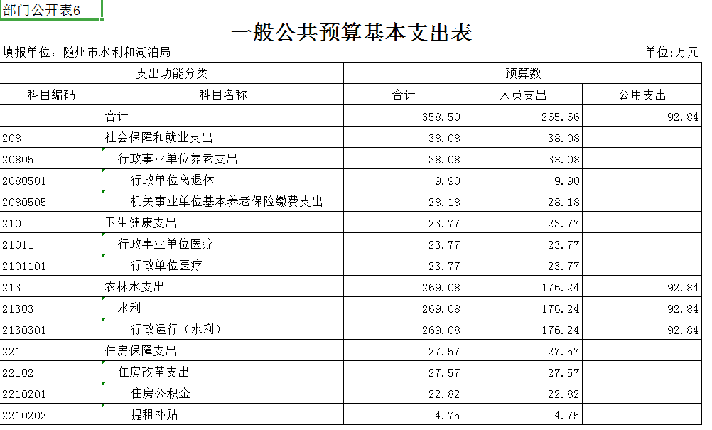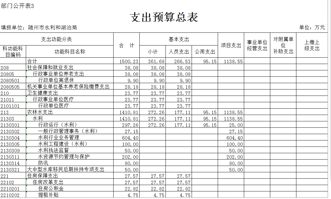 第三部分? 隨州市水利局2020年部門預(yù)算表