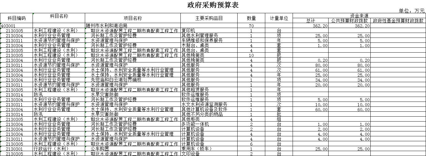 2020年納入部門預(yù)算管理單位8個(gè),隨州市水利和湖泊局(本級(jí))、水政監(jiān)察支隊(duì)、水利技術(shù)推廣中心、河道堤防建設(shè)管理局、先覺廟水庫工程管理局、白云湖水利工程管理局、隨中灌區(qū)管理局、市移民局。