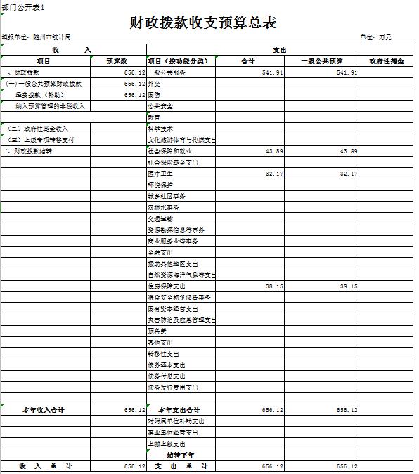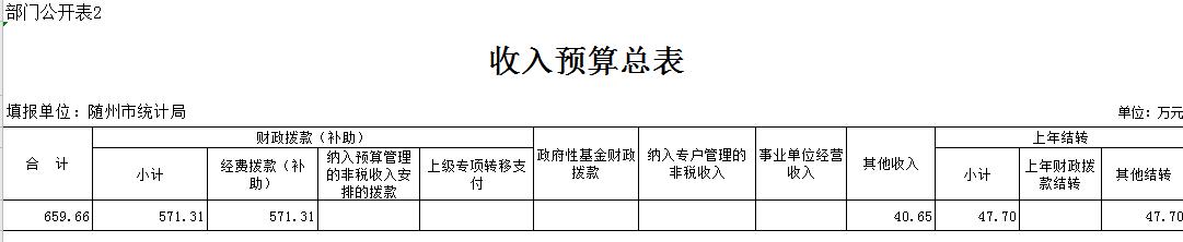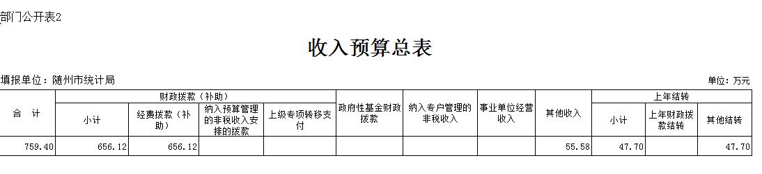 隨州市統(tǒng)計(jì)局(匯總)2020年收支總預(yù)算759.4萬元;隨州市統(tǒng)計(jì)局(本級)2020年收支總預(yù)算659.66萬元;