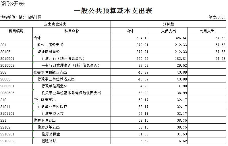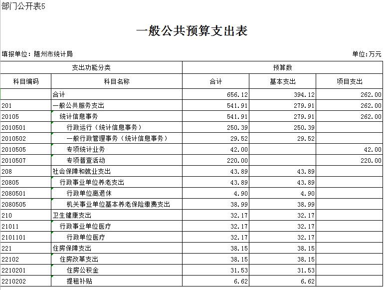 一、隨州市統(tǒng)計(jì)局2020年部門預(yù)算表(匯總)
