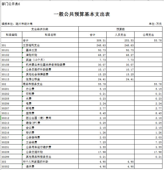 第三部分隨州市統(tǒng)計(jì)局2020年部門預(yù)算表