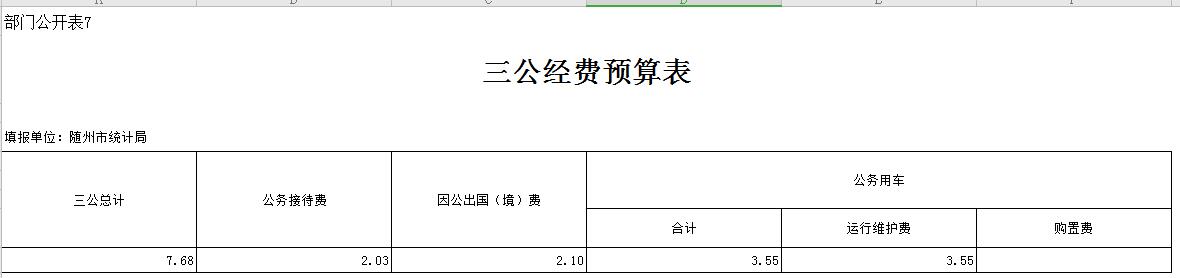 2020年隨州市統(tǒng)計(jì)局(本級)“三公”經(jīng)費(fèi)年初預(yù)算安排7.68萬元,比上年15.47萬元減少7.79萬元,同比減少50.36%,主要原因是:“三公”經(jīng)費(fèi)繼續(xù)大力壓縮開支。其中:
