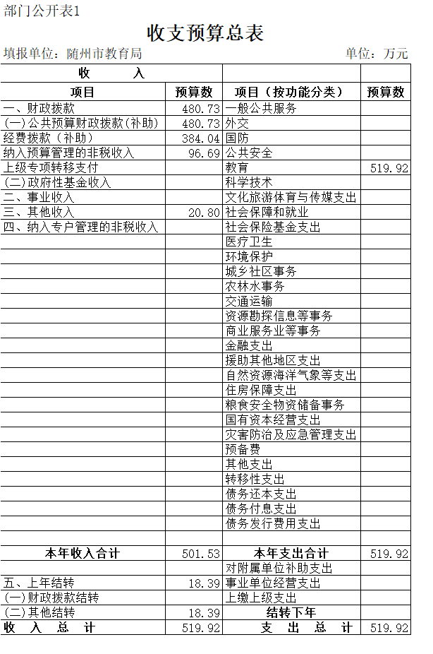 一、部門收支預算總表