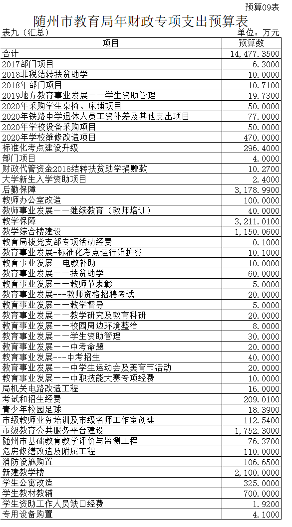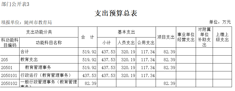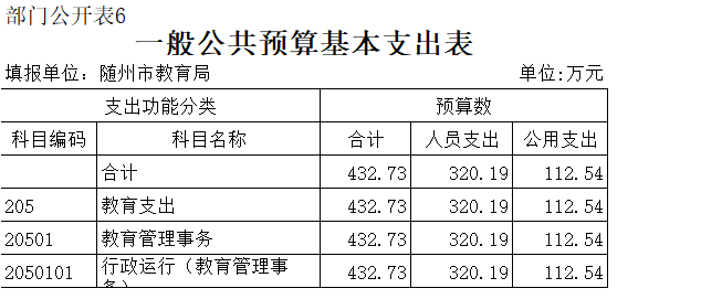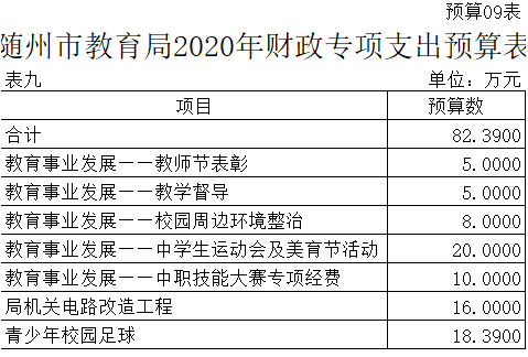 第三部分 隨州市教育局2020年部門預算表