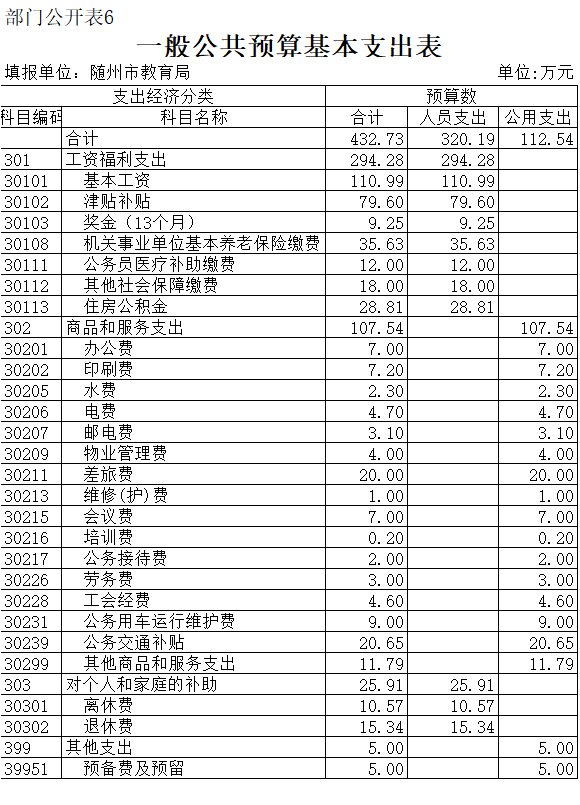 六、一般公共預算基本支出表