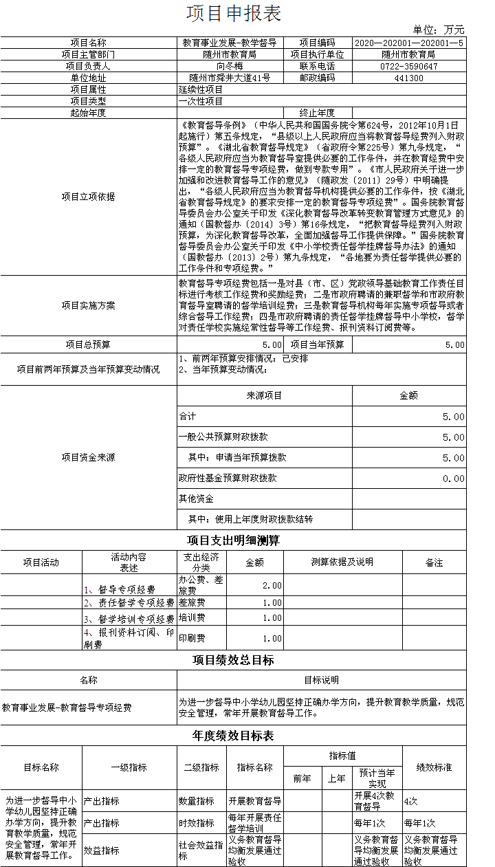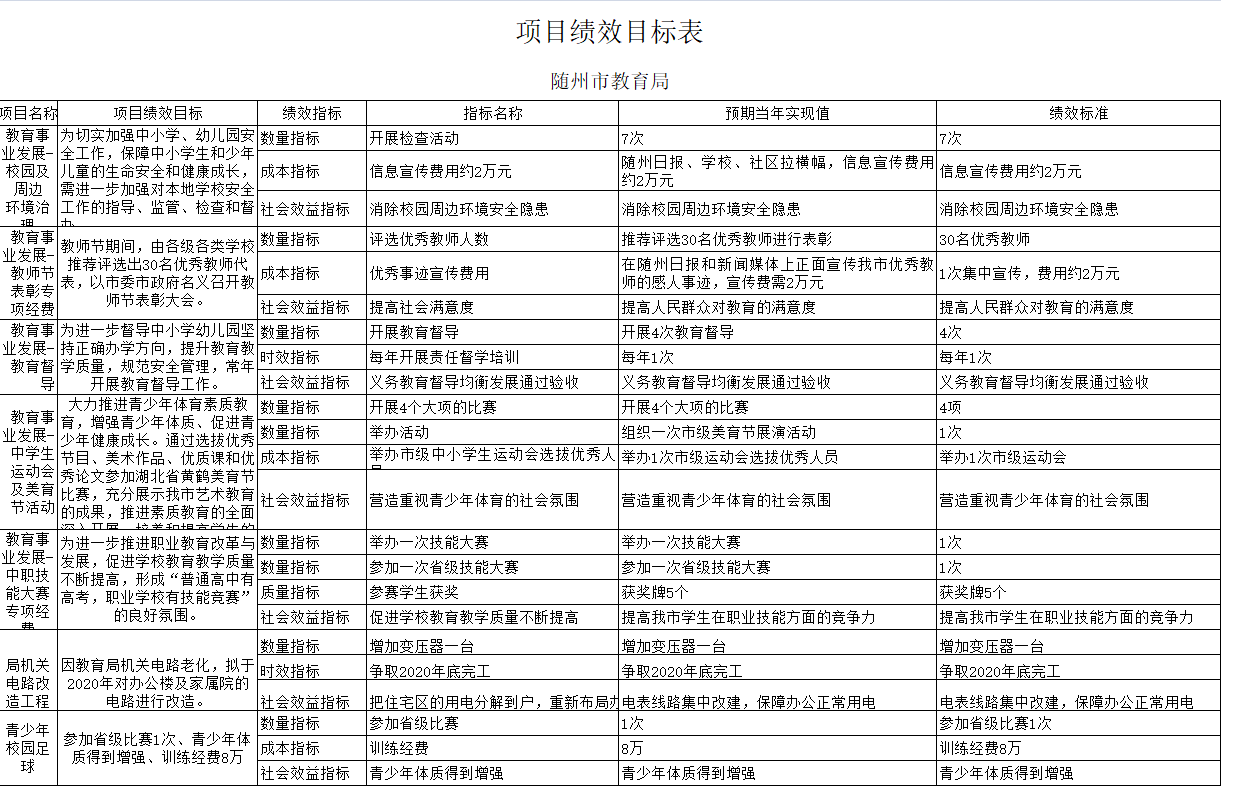 第四部分隨州市教育局2020年預算績效情況