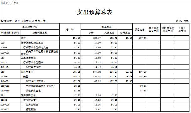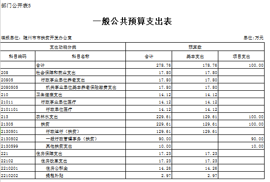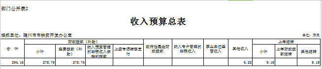 第三部分 隨州市人民政府扶貧開發辦公室2020年部門預算表