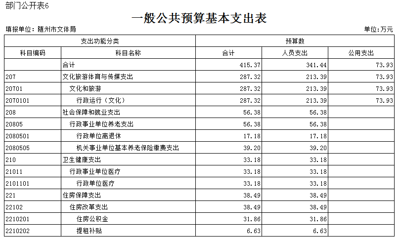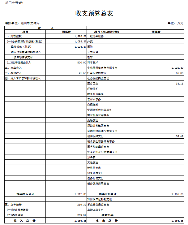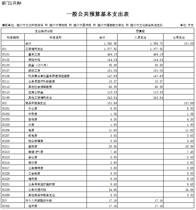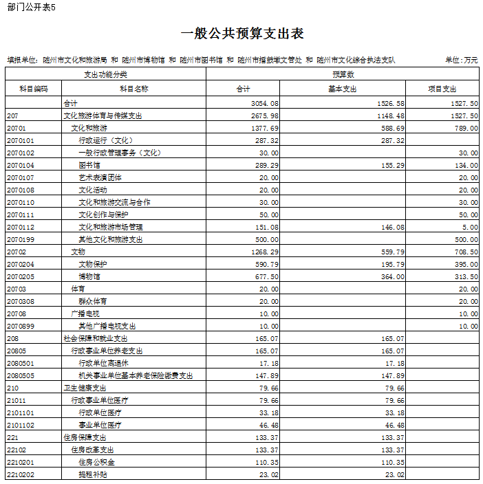 第三部分 ?隨州市文化和旅游局2020年部門預算表