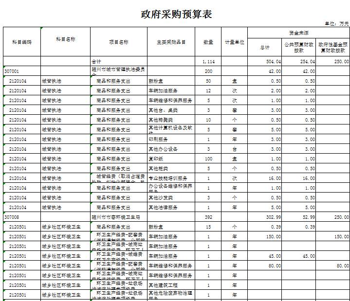 ??2020年城管執法委系統政府采購預算金額為1208.55萬元,比上年減少789.3萬元,減少39.51%,主要為環衛垃圾滲濾液和專項設備購置等政府采購支出。