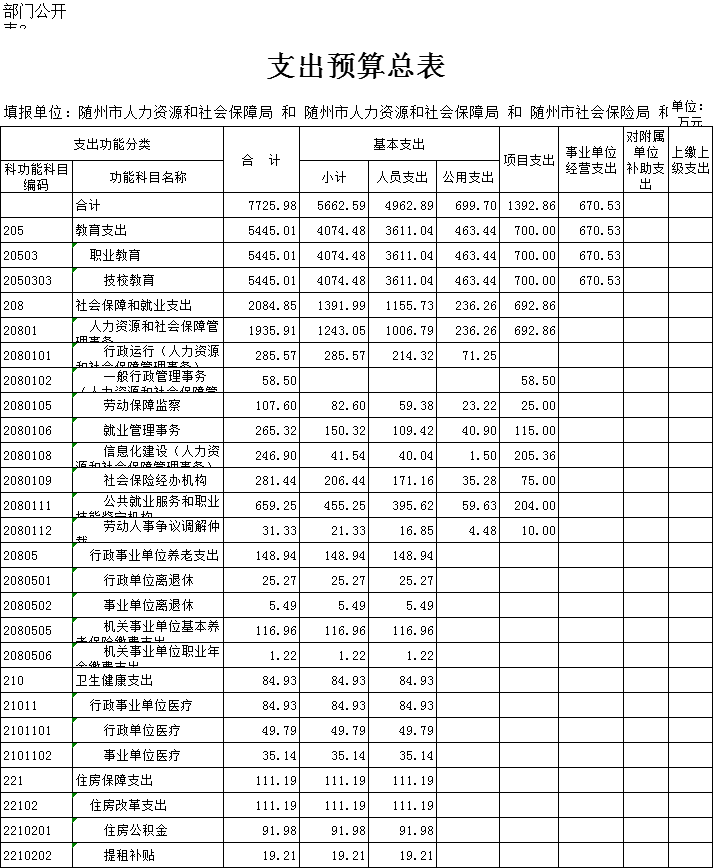 第三部分 ?隨州市人社局2020年部門預算表