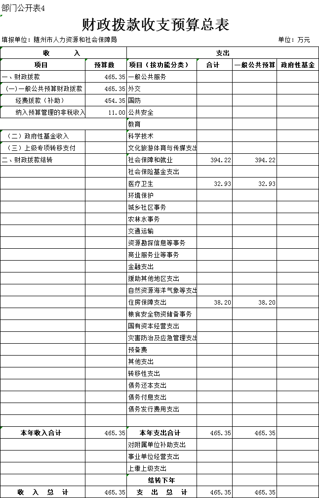 一、部門收支預算總表