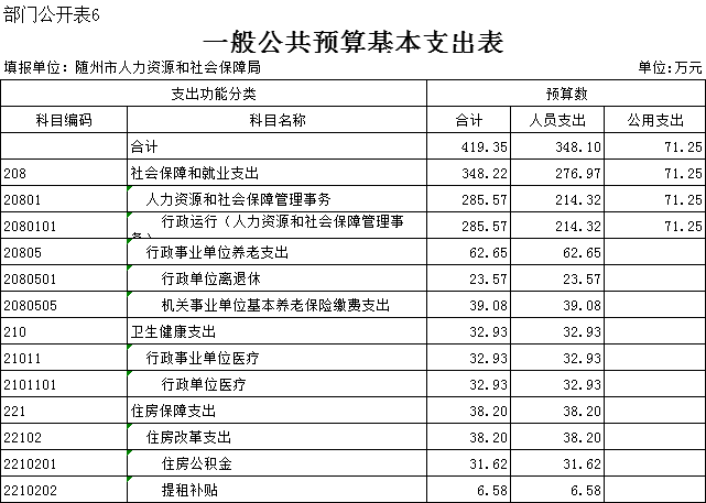 六、一般公共預算基本支出表