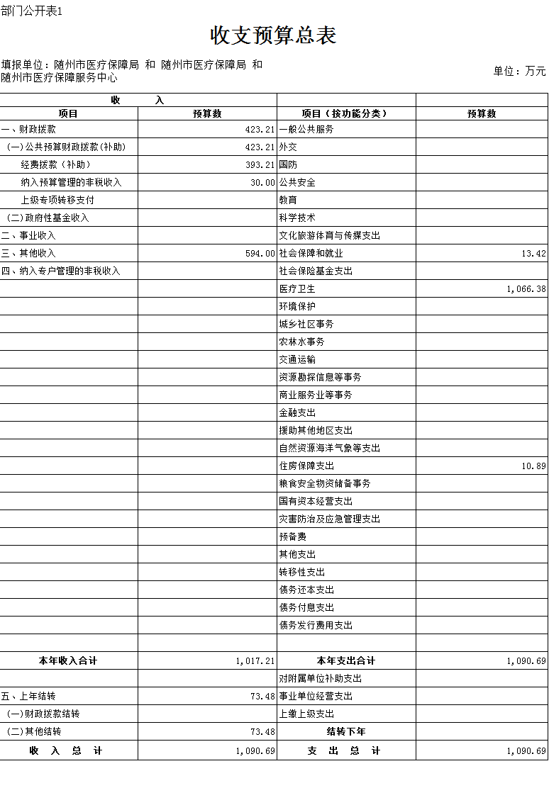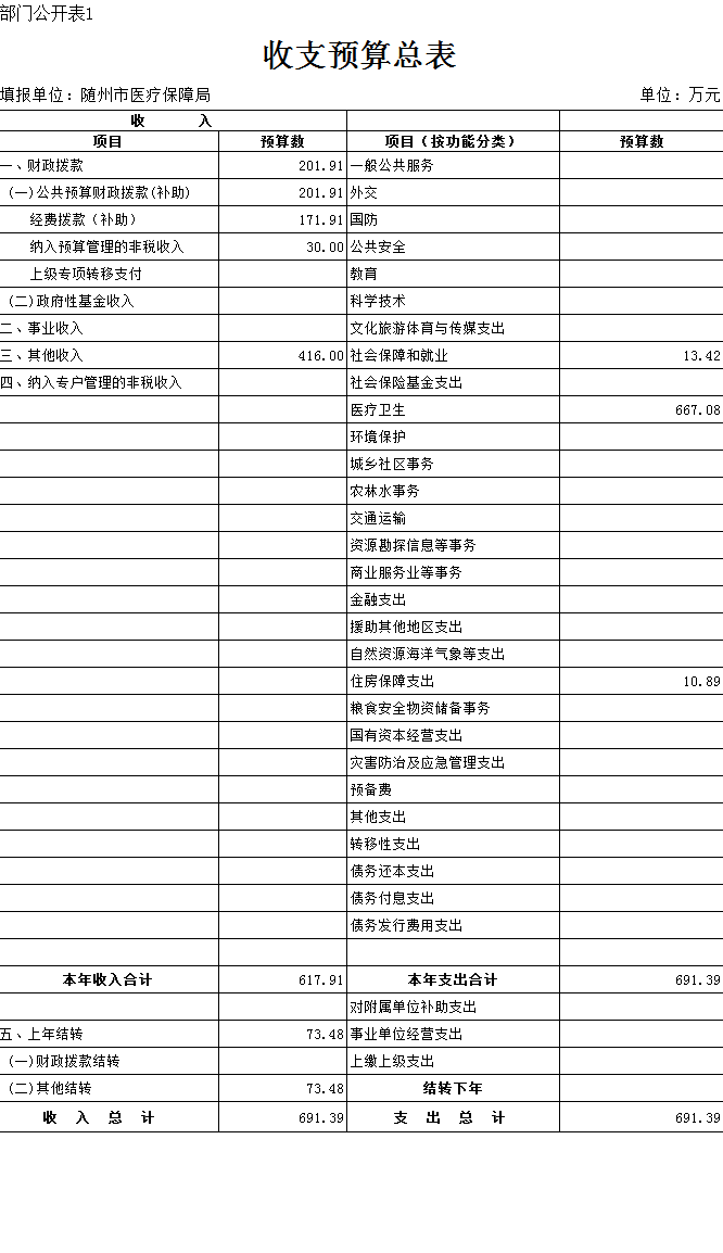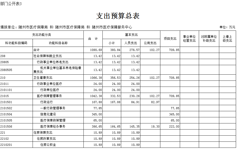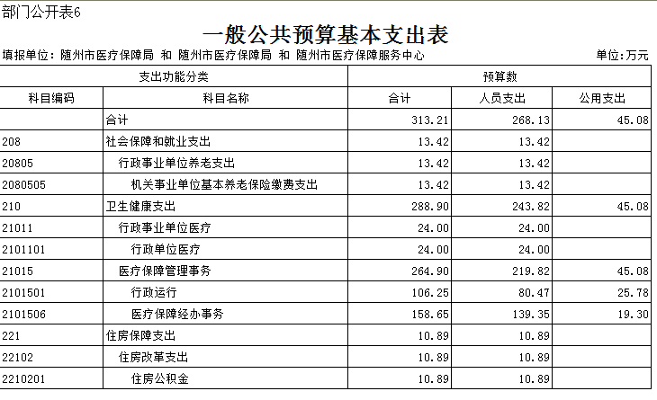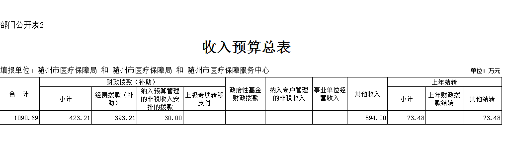隨州市醫療保障局2020年部門預算