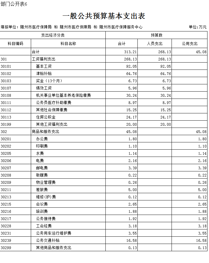 六、一般公共預算基本支出表