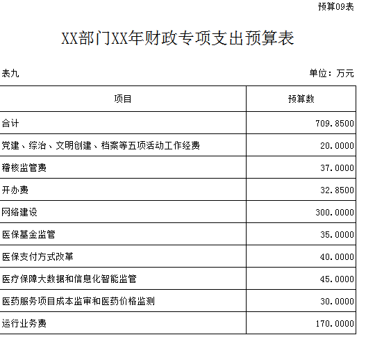 九、財政專項支出預算表